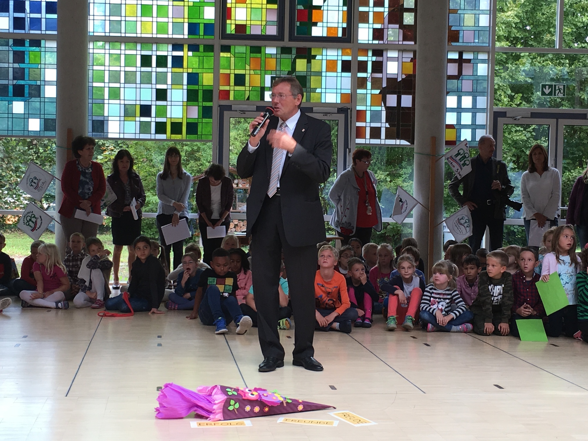 Ps: Auch Neuburgs Oberbürgermeister Bernhard Gmehling schaute zum 1. Schultag vorbei und begrüßte die 95 Erstklässler!